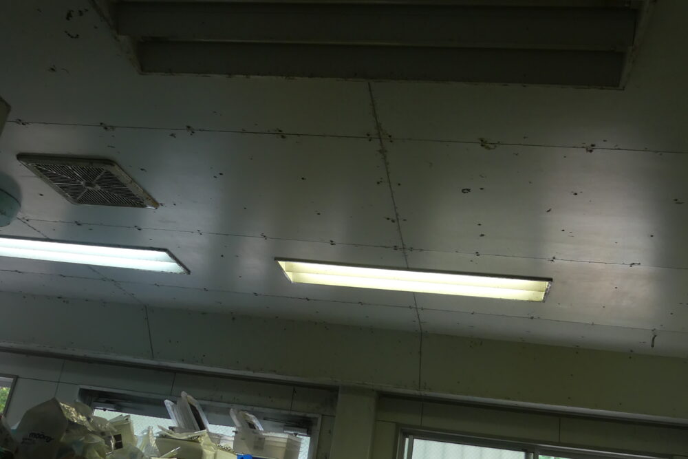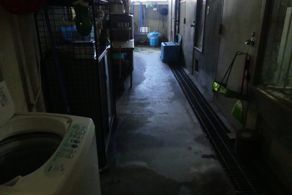 病院内の傷病鳥獣受け入れ室*鉄部の腐食や基礎の剥がれあり