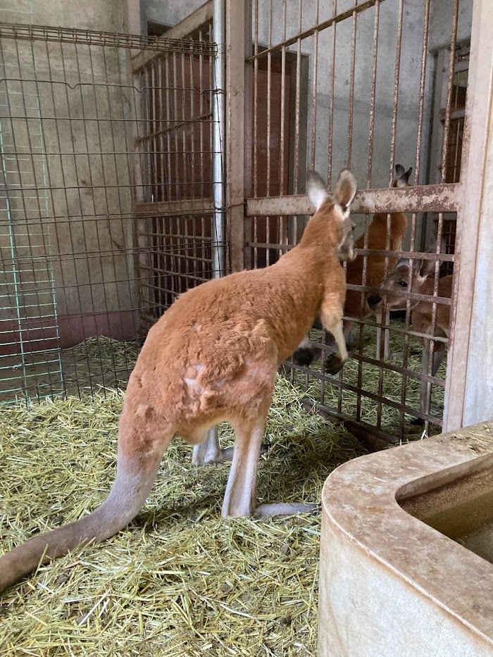 4月は幸い大きな診療はなく、静かな1ヵ月でした。ただ、毎日治療を継続している動物たちもいるため、動物病院では、経過確認や薬の準備に追われる日もあります。例えば、ニホンイノシシの‟いこい″は足元がおぼつかなかったり、食欲にムラがあったりするため、毎日胃腸薬と肝臓の薬を飲んでいます。高齢なため少し心配ではありますが、‟いこい″なりに体調は安定しています。ロバの‟ドン″は一時胃腸の調子が悪く、食べたものを吐出してしまうことがありました。その後‟ドン″に合う胃腸薬が見つかり、毎日飲み続けてもらった結果、現在症状は落ち着いています。ピューマの‟ニーナ″も胃腸が繊細で、寒さやちょっとした環境の変化で軟便になってしまう事がありました。現在はサプリメントで良便を維持できています。病院で暮らす高齢ヤギの‟ゆい″も体調に波はありますが、毎日貧血と神経の薬を飲み、好きな物を選んで食べながら、穏やかな毎日を過ごしています。