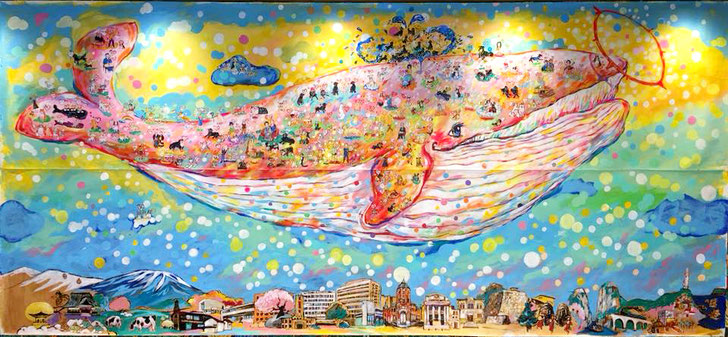 【天国のクジラプロジェクト】がZOOMOのFARMINFOのシンボルになります。【天国のクジラプロジェクト】は、アーテイスト長友心平氏の代表作であり、岩手県内含む各地で描かれている作品の一つです。