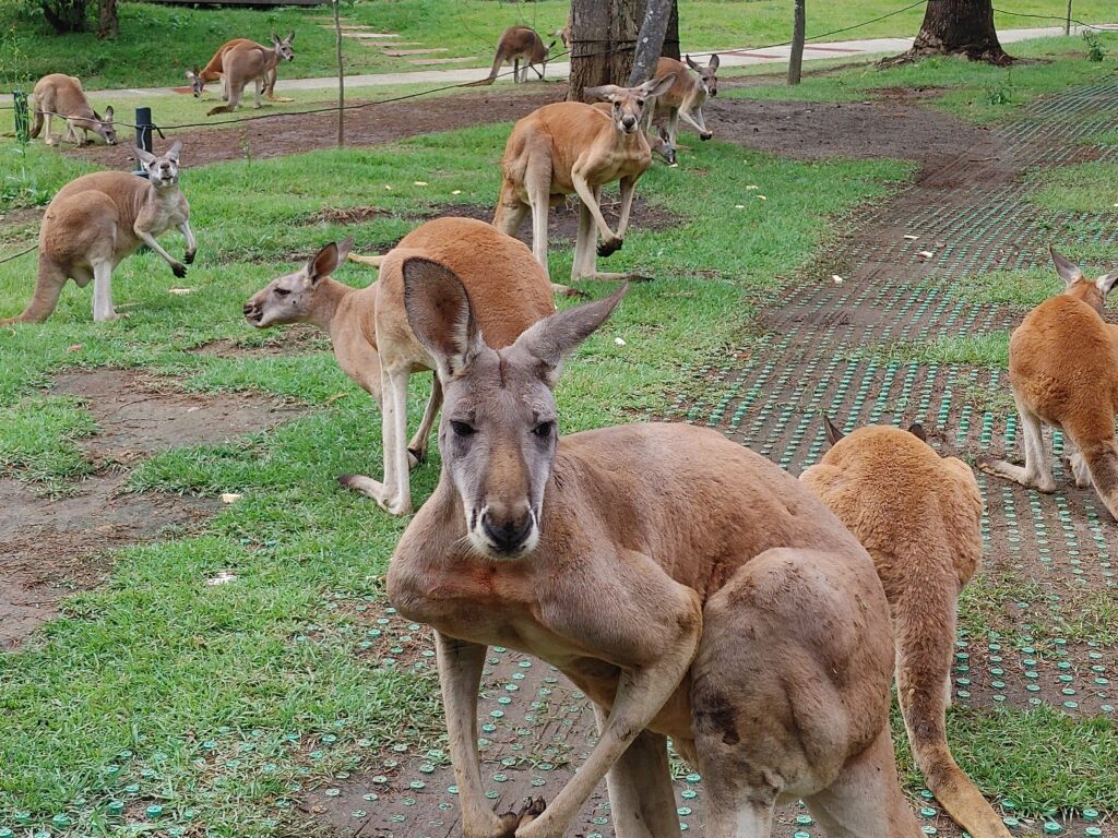 リニューアルオープン後、大人気の展示施設となったカンガルーヒルは冬季閉鎖しています。寒さが苦手なアカカンガルー達は獣舎前展示場でご覧いただけます。