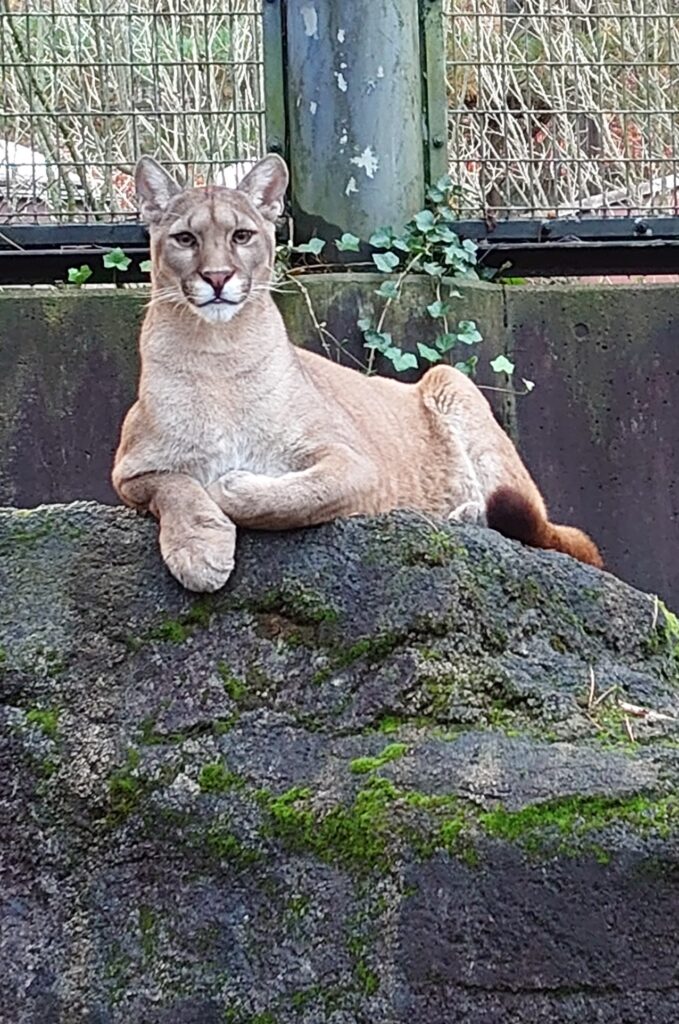 さて、当園で飼育している2頭のピューマ、オス“タフ”とメス“ニーナ”は現在繁殖に向けてのペアリングのため放飼場内同居中です。将来的な繁殖に備え、リニューアル工事では歴代のピューマ担当者念願の放飼場の増築が実現しました。これにより、繁殖制限中や子育て期間中に不足していた放飼場の問題が解決され、より健康的に、より安全にピューマを飼育することができるようになりました。しかし、今回の大規模リニューアル工事は限られた予算の中での工事だったため、増築放飼場の環境整備までは実現できませんでした。増築放飼場の地面は土がむき出しのため水はけが悪く、昨今のゲリラ豪雨で崩れやすい状態です。また擬木などの遊具などもないため、広さや高さがあるものの既存の放飼場に比べるとどうしても殺風景で簡素な印象になってしまいます。担当者として、増築放飼場を緑化するために牧草の種を蒔いたり、遊具変わりとなる丸太を立て掛けたりしていますが、理想の放飼場にはまだまだ追いついていません。