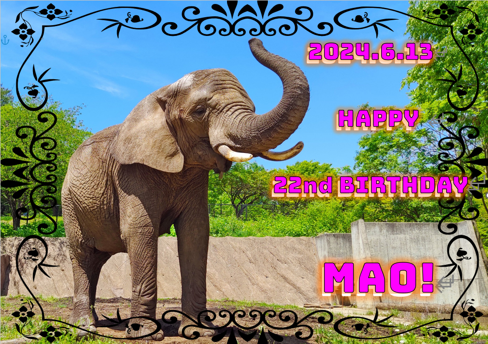 誕生日を記念して6月8日(土)、9日(日)、15日(土)、16日(日)の11時から、アフリカゾウ運動場前にて誕生会を行います。