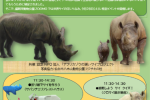 このイベントに合わせ、ZOOMOBASEでは「世界サイの日特別写真展」を9月14日(土)からい開催いたします。今回の世界サイの日特別写真展では、以前ZOOMOで飼育展示しており、令和3年6月18日に亡くなったシロサイのメス“サイカ”と、現在ZOOMOで飼育展示しているクロサイのメス“ラン”の写真を展示しています。