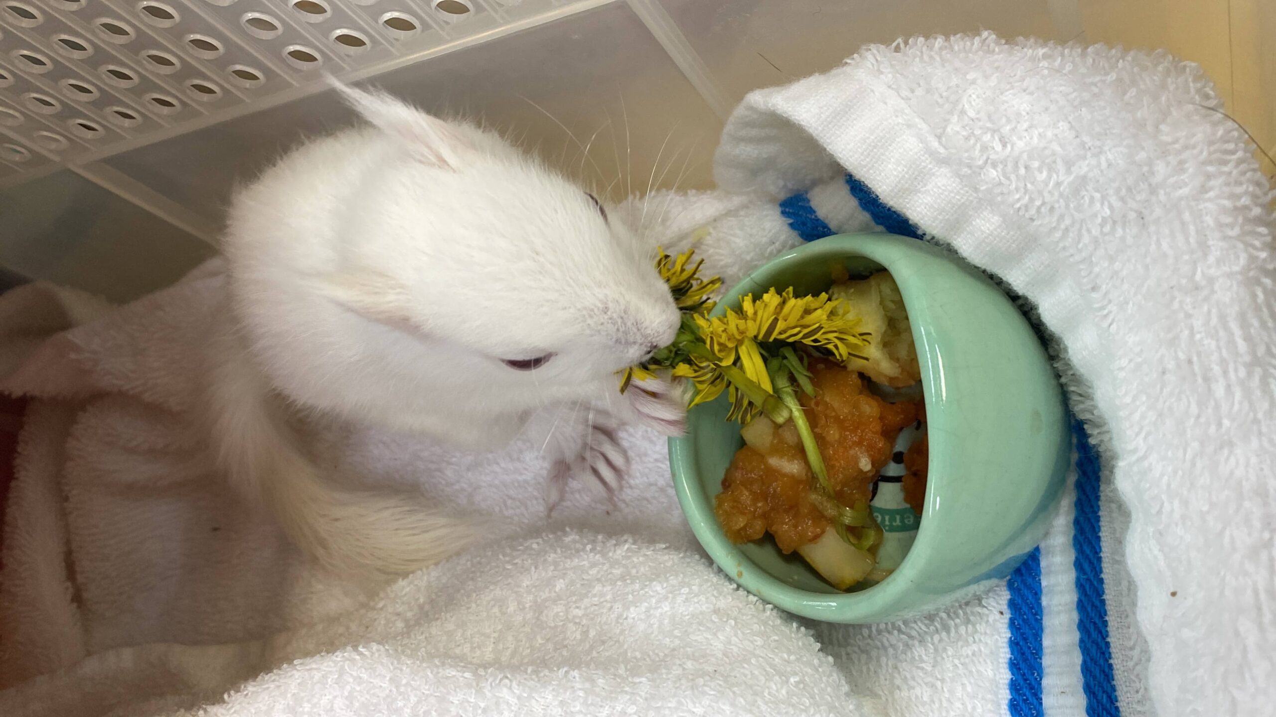またニホンリスの子どもが相次いで2頭も保護されました。1頭はめずらしいアルビノの二ホンリスでしたが、その個体は保護の原因となったケガの影響か鼻が詰まってしまうので毎日の注射治療や、必要に応じて酸素吸入を行っています。