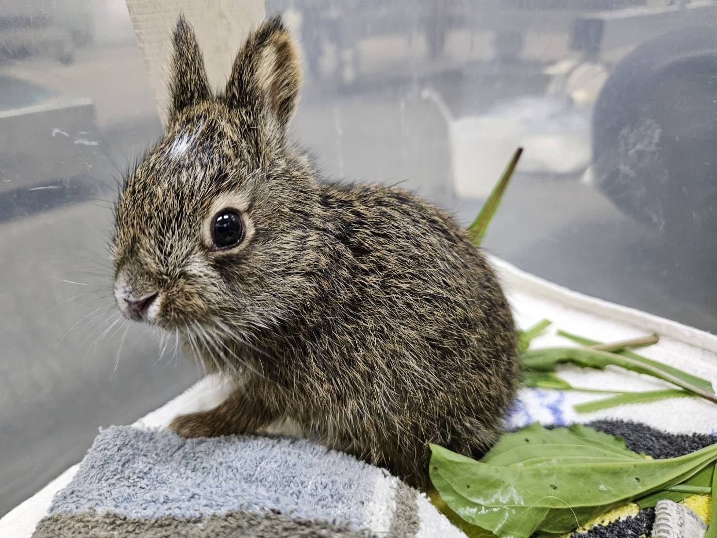 その後まもなくトウホクノウサギの幼獣が保護されました。まだ哺乳が必要な日齢で、ミルクを与えながらいろいろな野草を採ってきて離乳を試みましたが、残念ながら急激にお腹の調子が悪くなり、亡くなってしまいました。ノウサギは離乳のタイミングで体調不良を起こすことが多く、ここを乗り切れる確率を上げていくのが今後の課題となります。なお、ノウサギは生まれたころから親子ばらばらで過ごす時間がとても長く、子どもが1頭でいても安易に保護しないのが基本ですが、今回は民家に迷い込んでしまったという特別な事情があり保護していました。