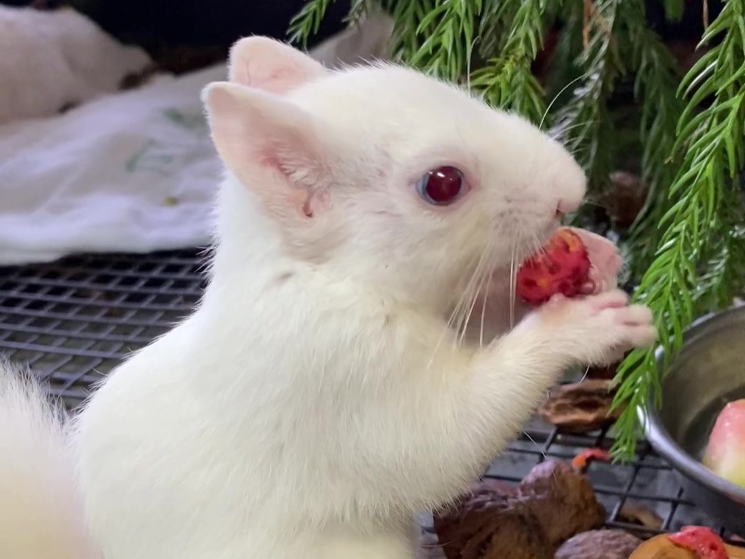 入院中動物たちについてですが、交通事故で保護されたニホンカモシカはまだまだ毎日のキズの洗浄処置が必要そうです。薬を変えたからか、ごはんを少し変えたからかずっと続いていた軟便は少し良くなる兆しが見えています。アルビノのニホンリスは広いケージ移動し、だいぶ慣れてきた様子です。ただ保護の原因となった外傷の後遺症とみられる症状は残っており、引き続き投薬が必要そうです。そのほかはたくさん食べてたくさん運動しています。