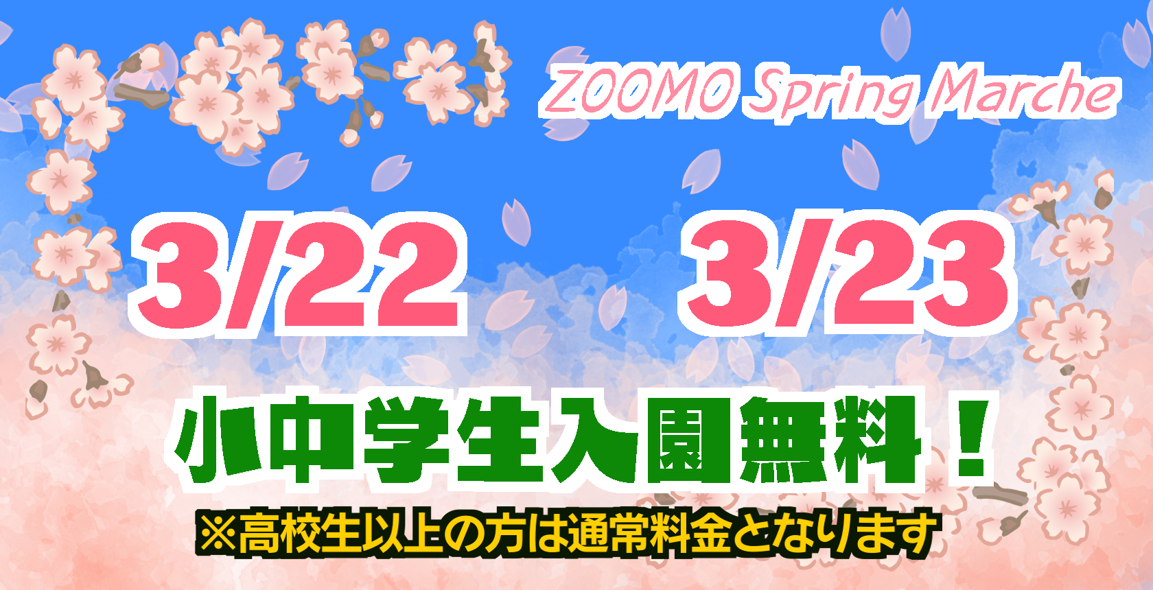 「冬のZOOMOに行こう!」小中学生無料入園日が3月22日(土)・23日(日)にも開催決定