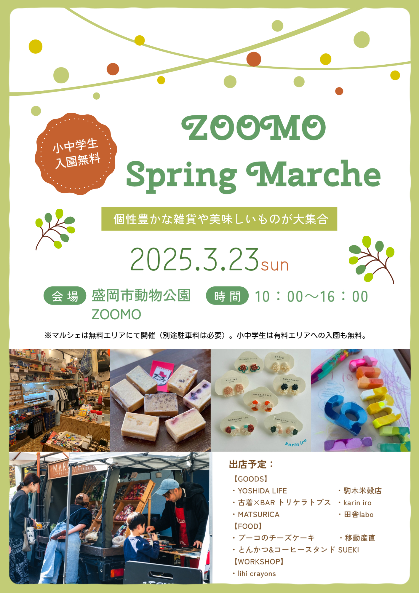 3月23日(日)には「ZOOMO探鳥会 春」と「ZOOMO Spring Marche(ズーモスプリングマルシェ)」も開催します。