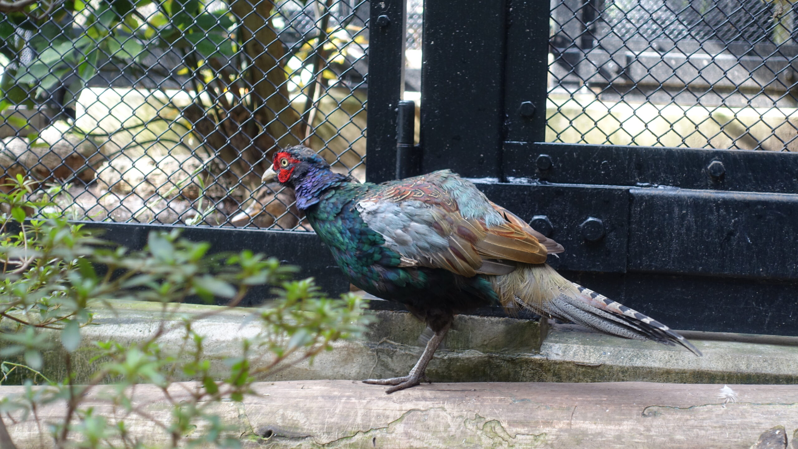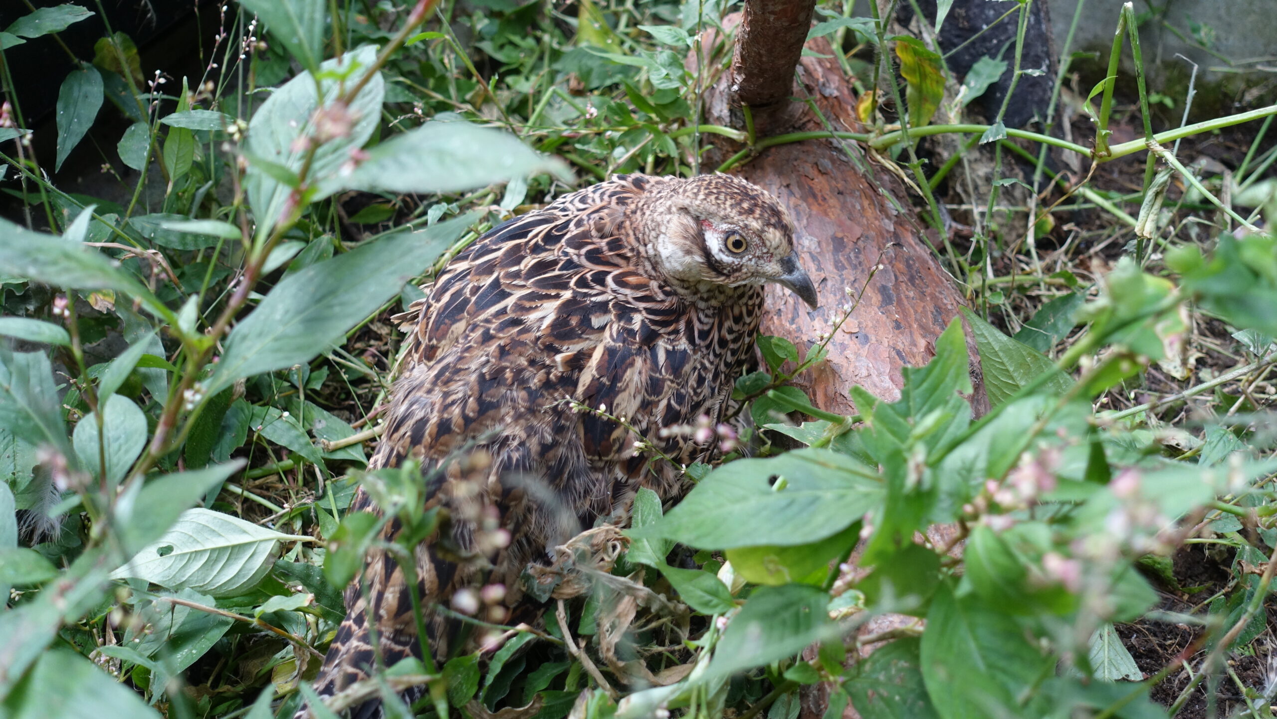 本州、四国、九州の農耕地や草地に生息しています。葉や種子、昆虫類などを採食する雑食性です。オスの体色は、光沢感のある緑色をしており、顔の皮膚は赤くハート型になっています。一方メスの体色は地味な褐色で、オスとは対照的です。繁殖期に、オスは「ケンケーン」と鳴きながらメスにアピールします。ニホンキジは日本の国鳥であり、昔から日本人にとっては馴染み深い鳥として知られ、昔話にもよく登場します。