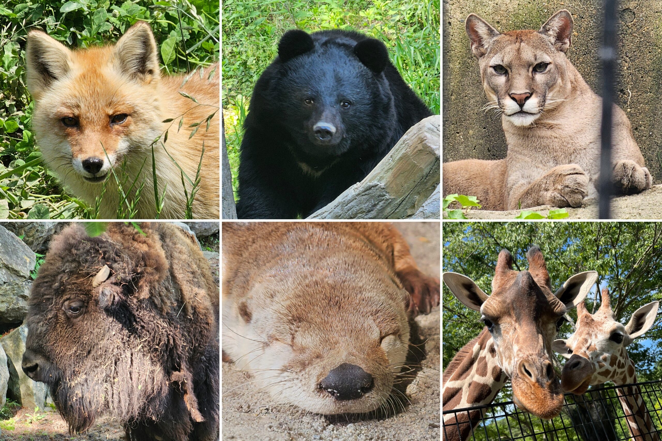 里山エリア:①ニホンリス、②ホンドタヌキ・ホンドギツネ、③ハクビシン・ニホンアナグマ(ニホンアナグマは冬眠のため、6月・10月・11月限定になります)、④ムササビ・モモンガ、⑤ニホンツキノワグマ・ニホンイノシシ(冬眠のため、6月・10月・11月限定になります)、⑥鳥類(猛禽類以外の鳥類、鳥インフルエンザ対策のため6月限定)