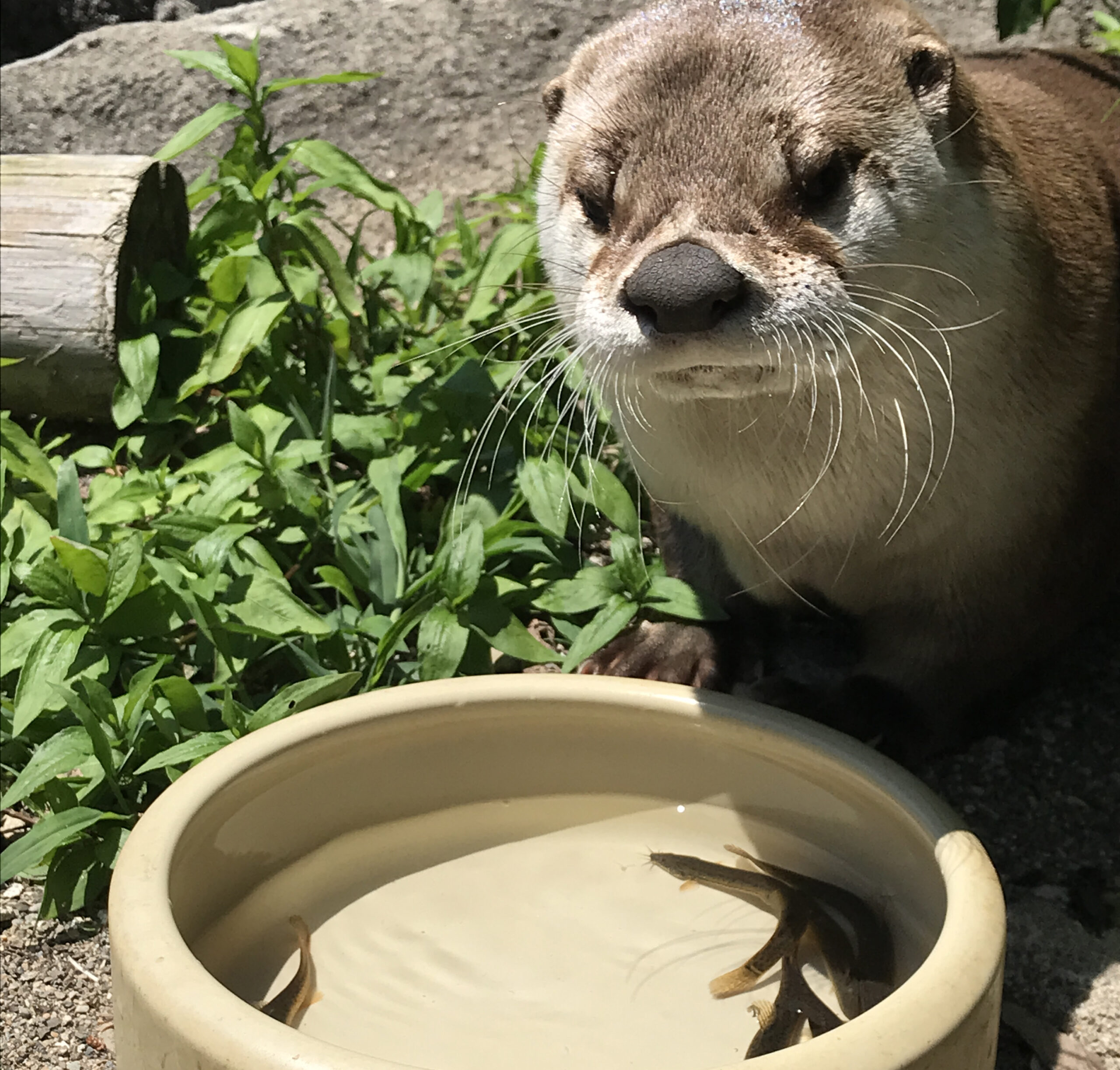 北アメリカ、オセアニア、牧場エリアの動物たちの体のつくりや行動についてのガイドをしながら、採餌する様子を観察してもらいます。またカナダカワウソでは様々な形のおやつ箱を使い、好奇心の強いカナダカワウソの行動レパートリーを引き出す飼育の工夫を紹介します。