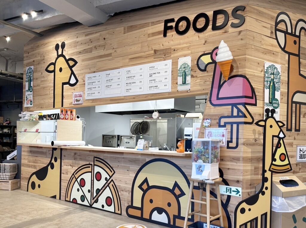 ピザはハーブやスパイスを抑え、お子様も食べやすい味わいにしています。他にソフトクリーム、各種ドリンクに加えビールも。